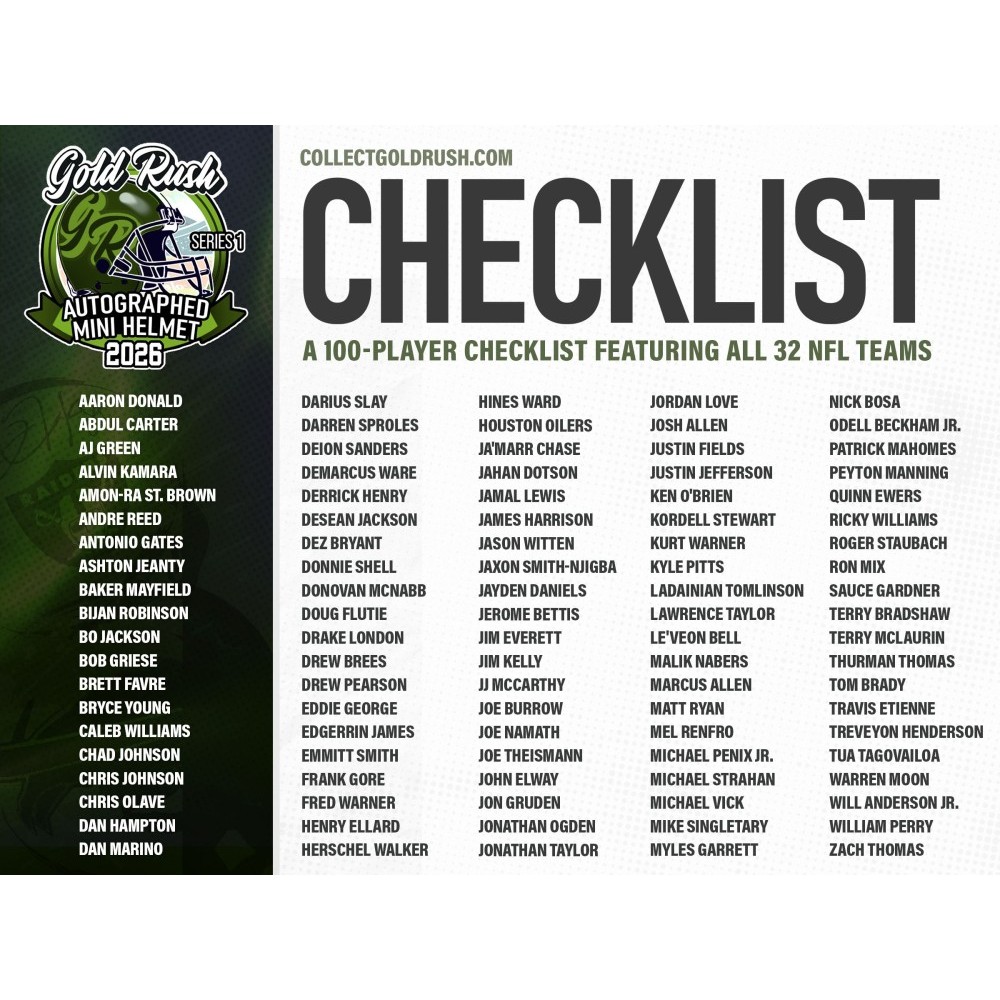 Elevate your collection this playoff season with 2026 Gold Rush Autographed Mini Helmet Football Edition Series 1!